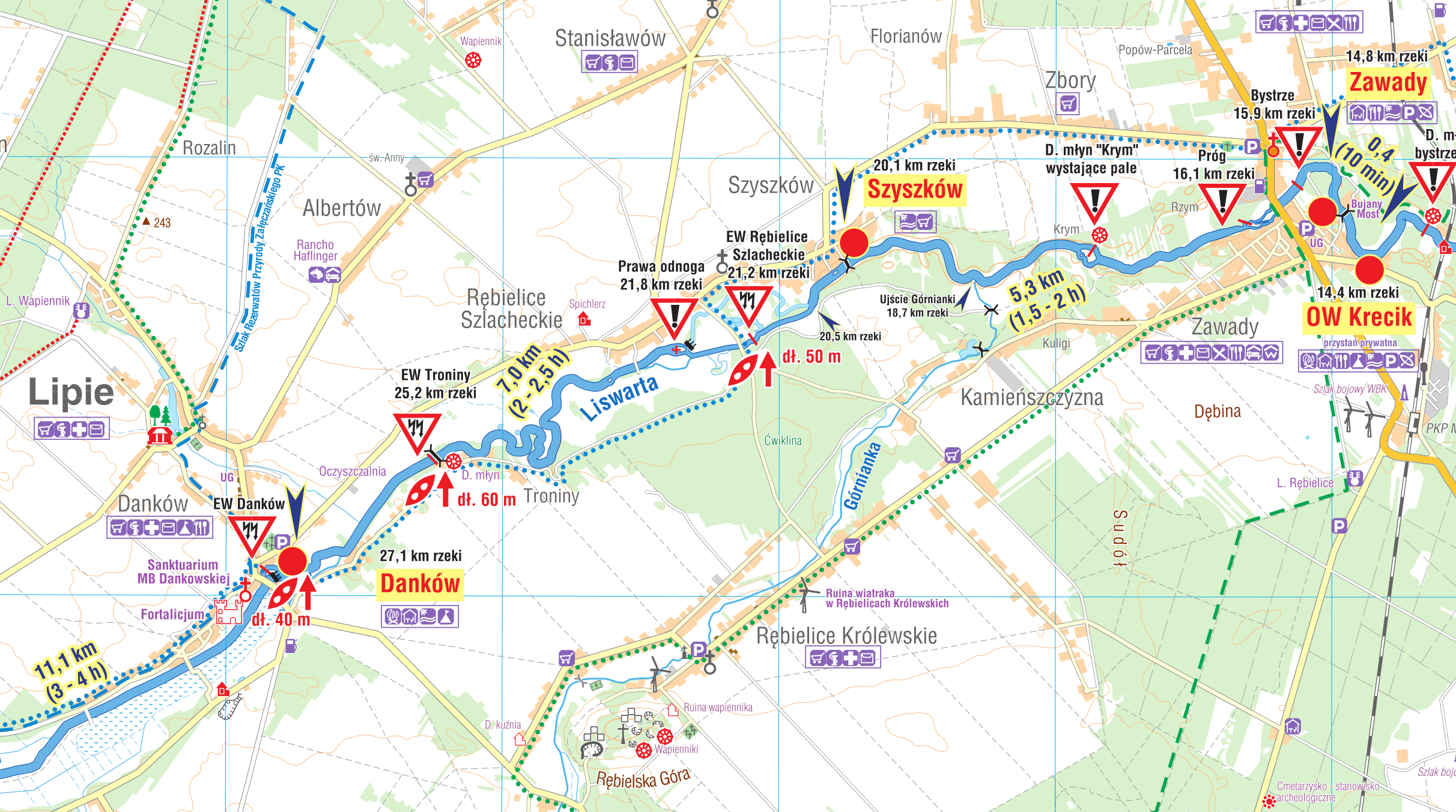 Szczegółowy opis trasy: poliswarcie.pl/kajaki/dankow-zawady-ow-krecik (od 7 km - miejscowości Szyszków)